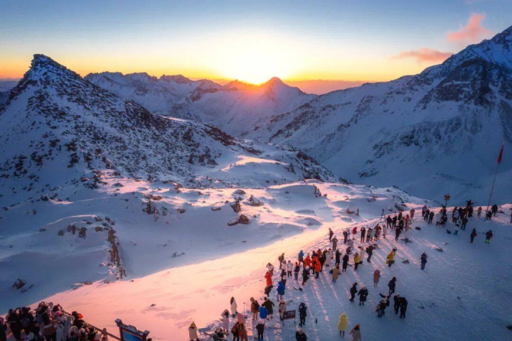坐宇宙海拔最高的客运缆车登上达古冰川,山顶的白雪还赖着不愿走,山脚的野桃却依然开得热吵杂闹。风里自然还带着点凉意,但太阳却把东说念主晒得懒洋洋~