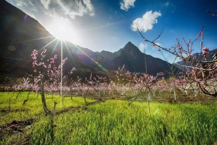 冰川离职桃洞开,藏寨旁柳枝抽芽